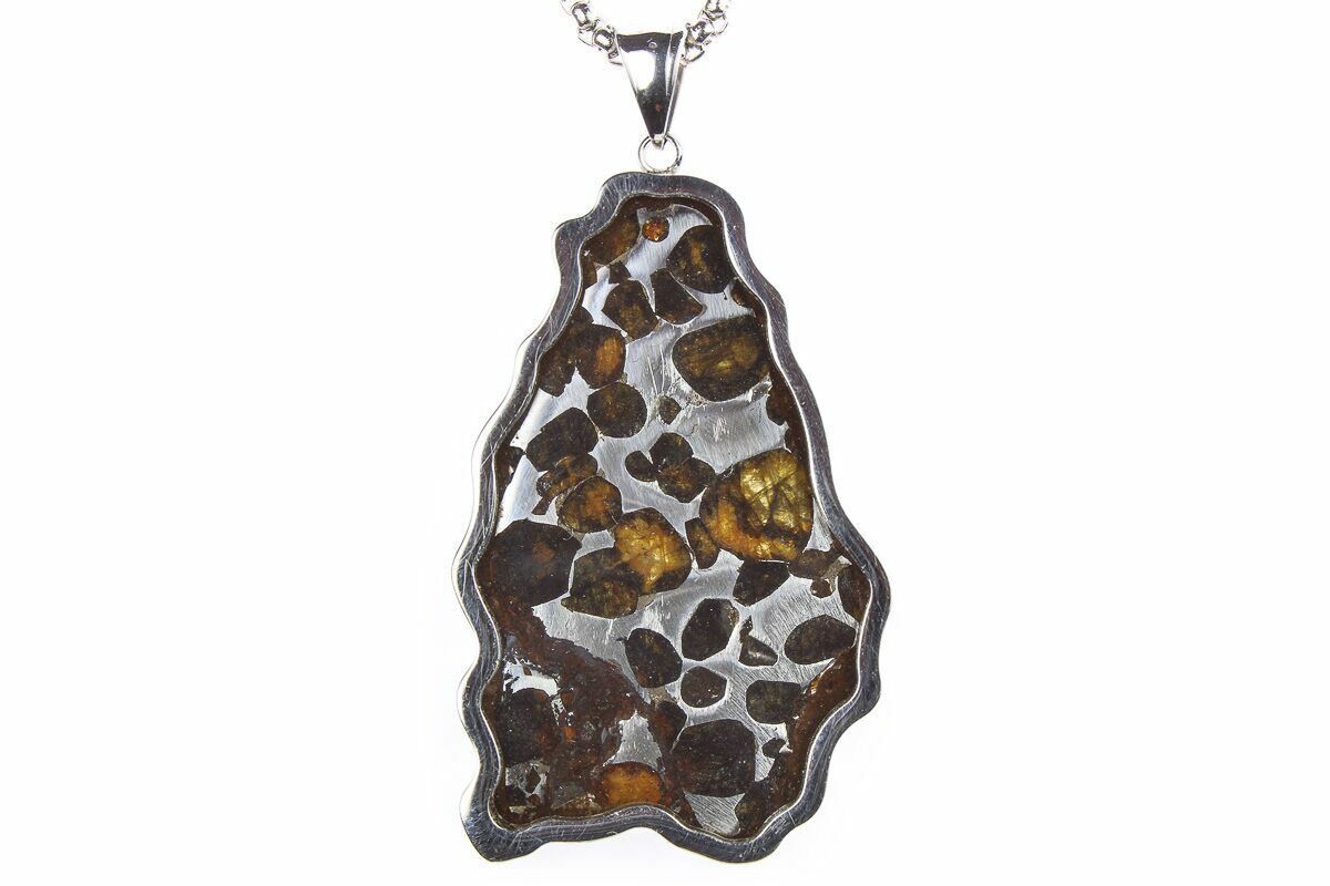 Brenham pallasite Meteorite Pendant necklace, Olive Meteorite Specimen Collect - TB172