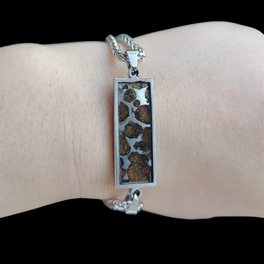 Brenham PALLASITE Meteorite Bracelet Natural Olivine Meteorite Bracelet Women's Bracelet Jewelry adjustable -TB244